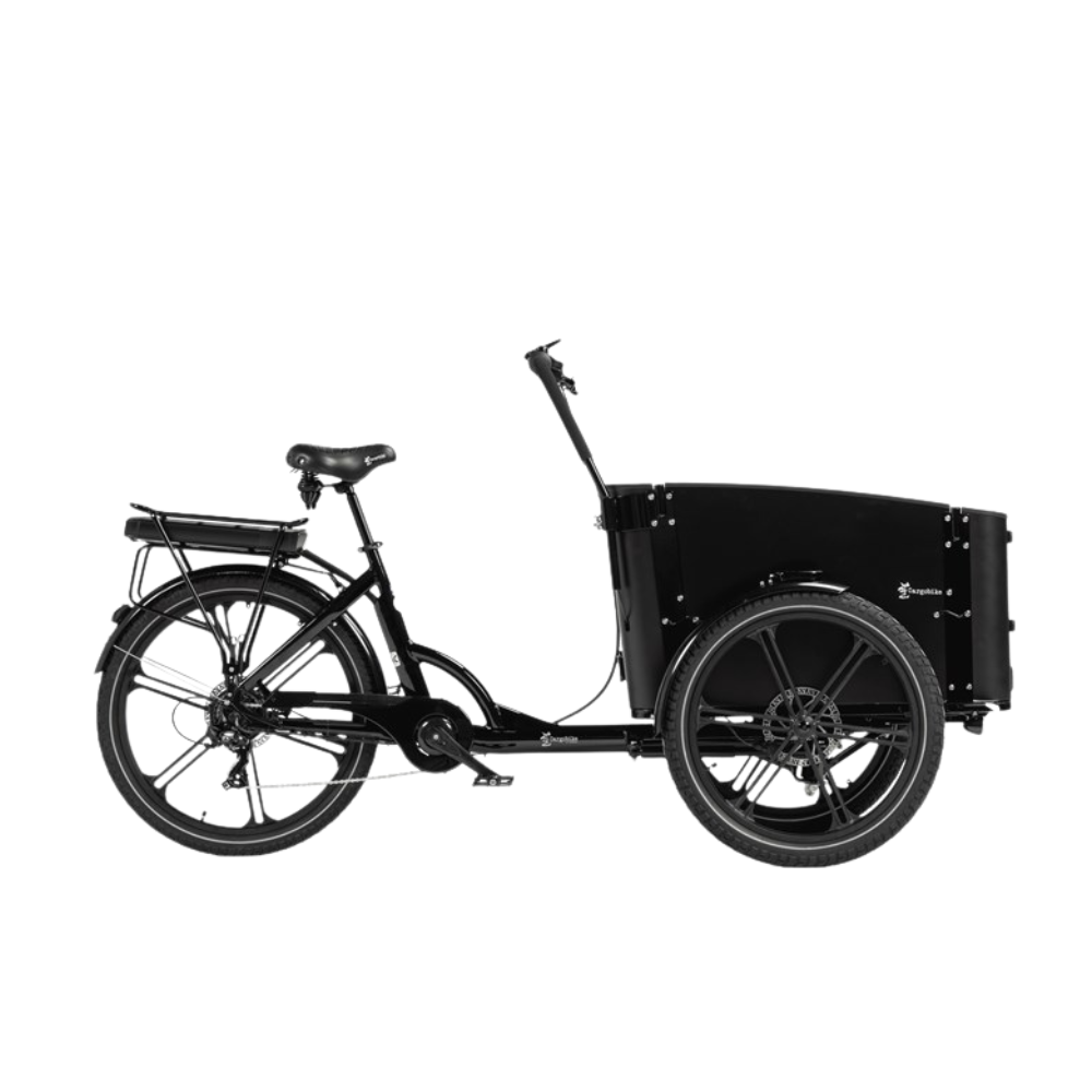 Cargobike Delight är en modern lådcykel med mittmotor. Dessutom känner den av hur hårt du trampar och kompenserar assistansnivån. Med det kraftiga batteriet är uppskattad räckvidd mellan 30 – 60 kilometer. Batteriet laddas enkelt i ett vanligt eluttag. På styret finner du ett uttag för USB-laddning och cykeln är utrustad med automatisk belysning både fram och bak.